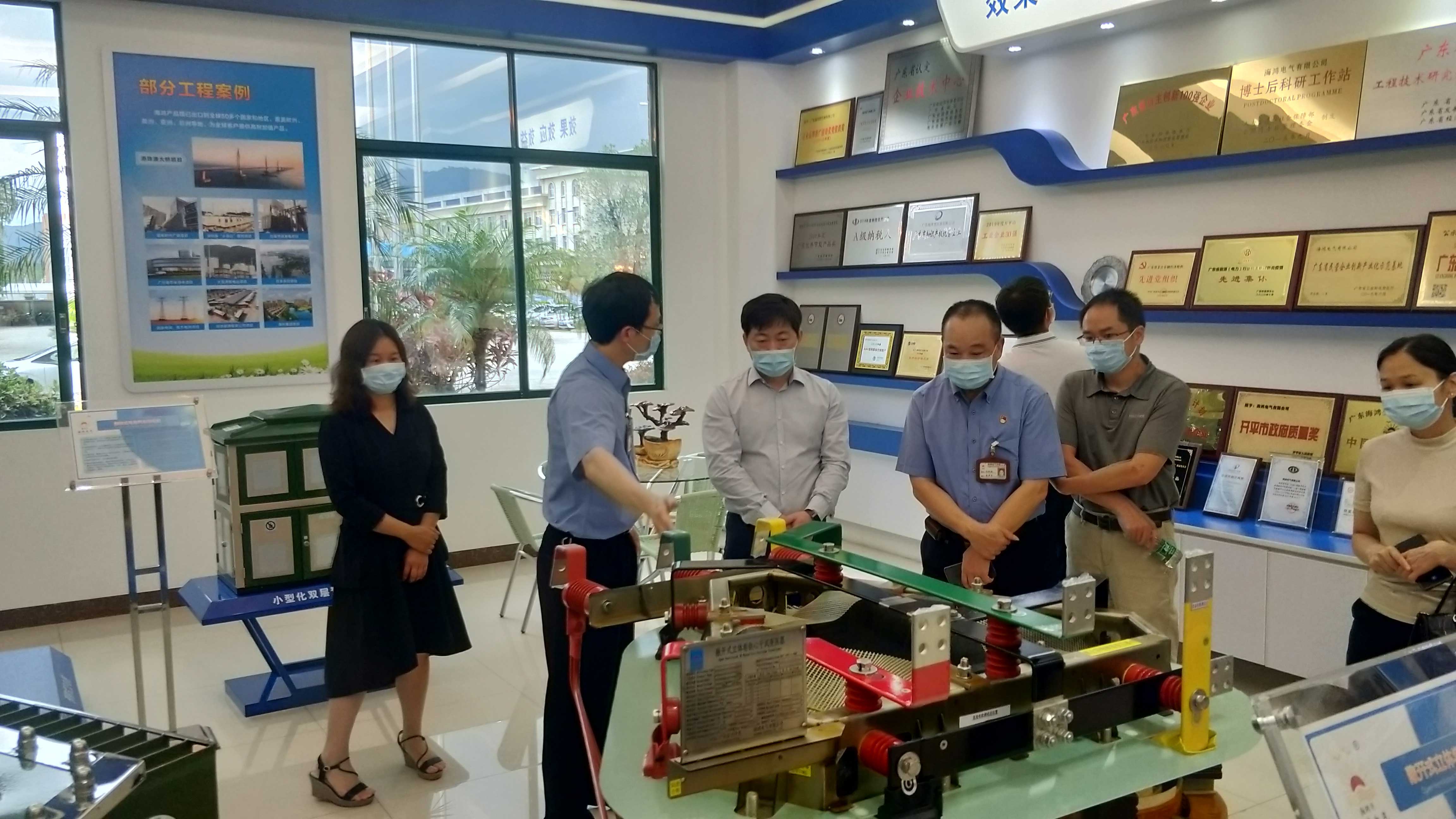 为了更好的实地了解储能、绿色微电网、高效变压器等节能与绿色技术发展和应用情况,工业和信息化部节能司王孝洋副司长一行来广东考察调研,于2021年5月26日莅临杏耀平台登录入口电气有限公司开展走访调研工作。省工业和信息化厅张振祥总经济师、开平市人民政府梁健芬副市长等领导以及江门市工业和信息化局、开平市科工商务局等相关部门领导陪同调研。