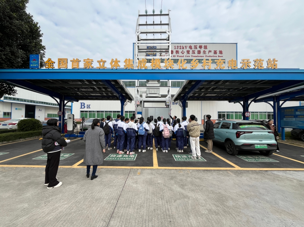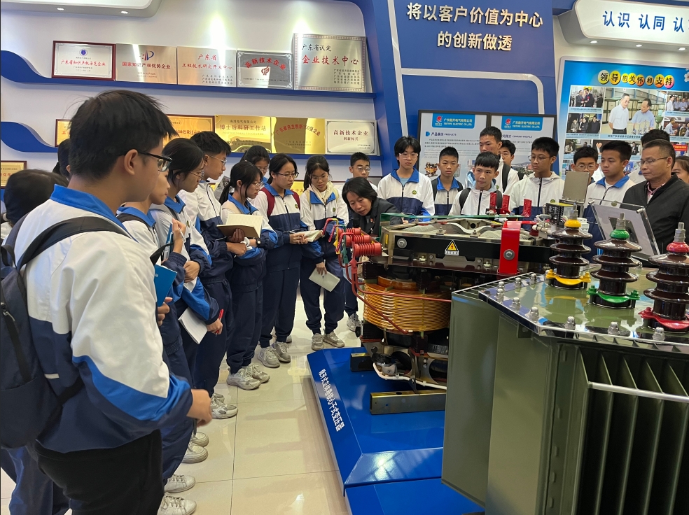 随着技术讲解员的引领,学生们参观解了了立体卷铁心变压器和相关节能立体卷铁心技术,以及智能箱式变电站、智能集成一体式汽车充电站等行业前沿产品。从电学、磁学到热力学,每一个课堂上的理论概念都被巧妙地融入生动的实例中,让原本枯燥的理论变得鲜活起来。学生们听得津津有味,不时提出自己的疑问和见解,积极参与科普活动的有奖竞答环节,现场互动热烈。同学们在此次活动中收获了宝贵的科学技术知识,纷纷感叹道:"这是我参加过最有意义的一次科普实践活动!"