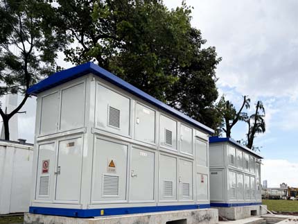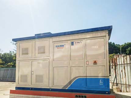 紧凑式双层设计:双层箱变结构将变压器放置上层,占地面积较传统方案减少80%(含土建基础),完美适应目前充电站建设土地资源紧张的需求,提高广州荔湾白鹤洞老油库改造后的土地利用率。